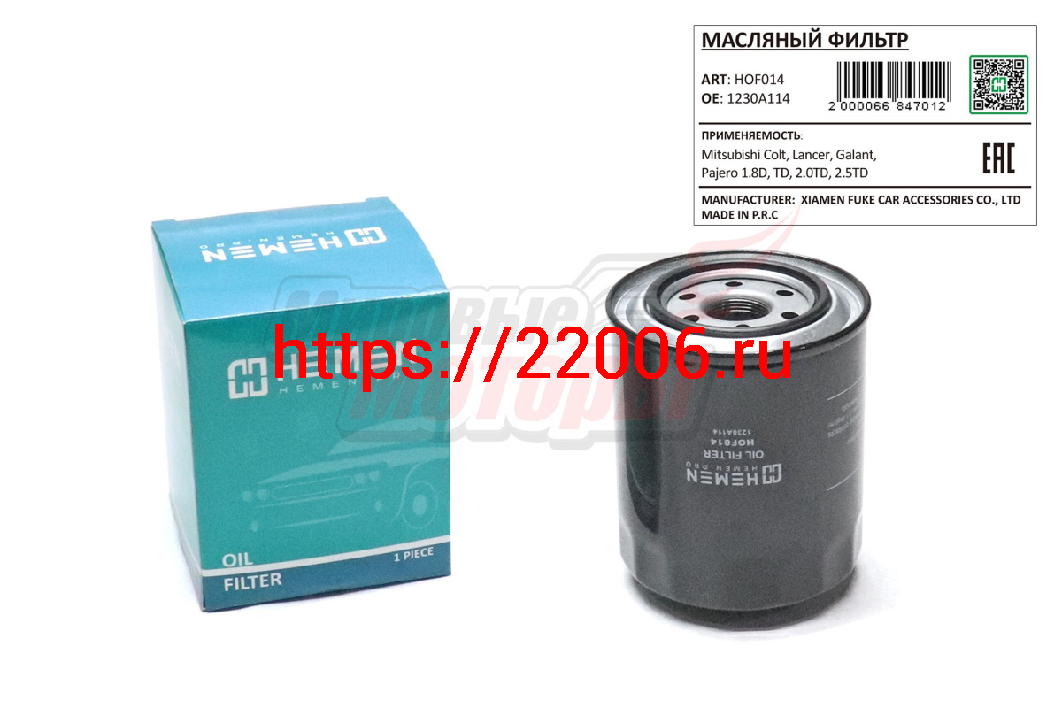 - Фильтр масляный Mitsubishi Colt, Lancer, Galant, Pajero 1.8D, TD, 2.0TD, 2.5TD (HOF014) в Перми недорого