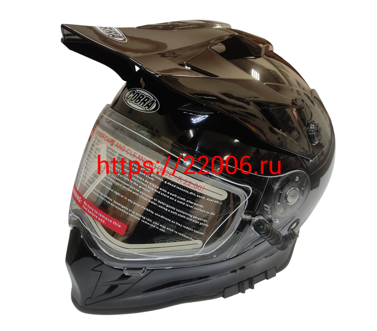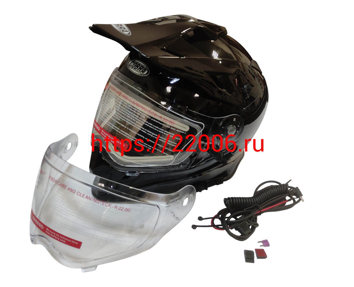 - Шлем кроссовый со стеклом (туринг) СНЕГОХОДНЫЙ COBRA EC H331, черный, с ПОДОГРЕВОМ ВИЗОРА, размер L в Перми недорого