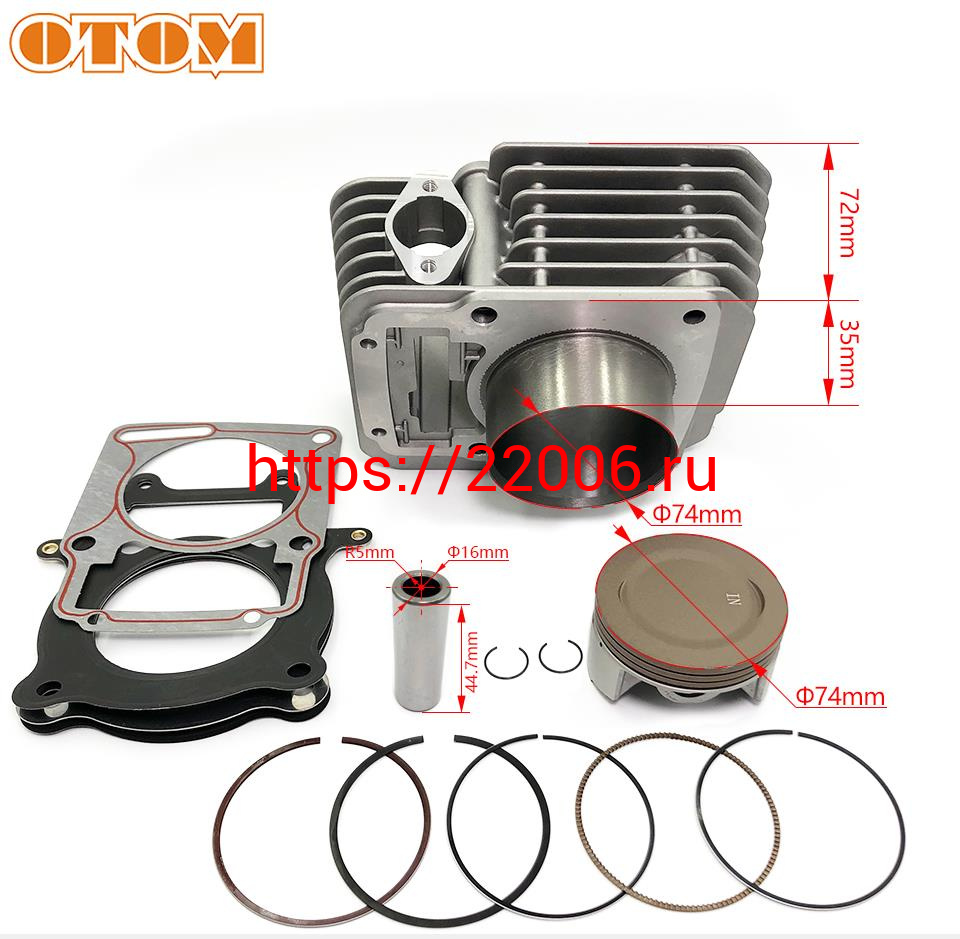 - Цилиндр в сборе с поршнем ZS172FMM-3A, 74мм, тюнинг ZS174FMM (CB250-F) (big bore) OTM в Перми недорого