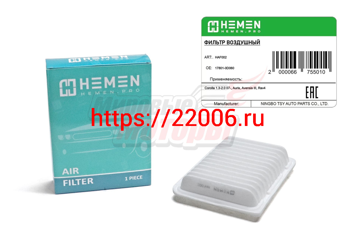 - Фильтр воздушный Toyota Corolla 1.3-2.0 07-, Auris, Avensis III, Rav4 (HAF002) в Перми недорого