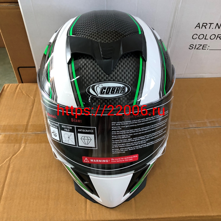 - Шлем интеграл COBRA JK311, белый с черным и зеленым(9), размеры L в Перми недорого